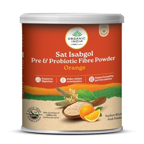 A TATA Product- Organic India Sat Isabgol Pre & Probiotic Fibre Powder Orange, 100g