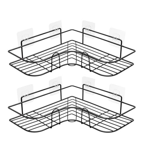 Amazon Basics Self-Adhesive Corner Shelf | No-Drill, Wall-Mounted Organizer for Bathroom, Kitchen & Living Room – Premium Rust Proof GI Metal, 27 x 27 x 6 cm, Black, Pack of 2