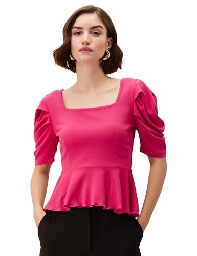 Amazon Brand – Eden & Ivy Women’s Regular Fit Knit Peplum Top_ENI – SS22WTOP – 204_Pink_M is available on Amazon at best discounted online price. Original price of this product is ₹ 1099. You can buy this product at discounted rate ₹ 199.