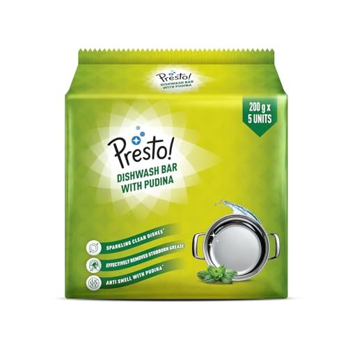 Amazon Brand – Presto! Dishwash Bar – Pudina | 200g | 5 Bars Each X Pack of 1 | Removes Tough Grease | Fresh Pudina Fragrance | Gentle on Hands is available on Amazon at best discounted online price. Original price of this product is ₹ 275. You can buy this product at discounted rate ₹ 109.