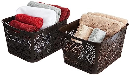 - AMPLE SPACE: The baskets are deep enough to store and organize shampoos, conditioner bottles, lotions, body wash, hand towels, beauty products, etc. on a bathroom shelf rack
