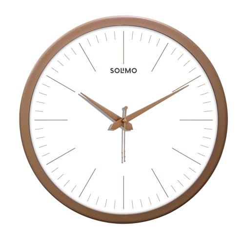 Amazon Brand – Solimo Elegant Metallic Analog Wall Clock, Silent Sweep, Slim Line Time Indicator (12 Inches, Copper Frame)