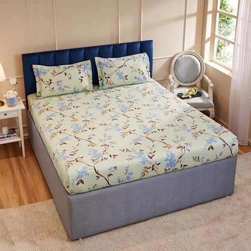 Amazon Brand – Solimo Fitted Double Bedsheet with 2 Pillow Covers | 144 TC Cotton | Wrinkle Resistant (Minty Blossom) is available on Amazon at best discounted online price. Original price of this product is ₹ 1899. You can buy this product at discounted rate ₹ 549.