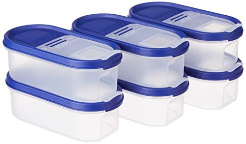 Amazon Brand – Solimo Modular Plastic Container and Dispenser, Set of 6 (525 Ml Each) – Blue