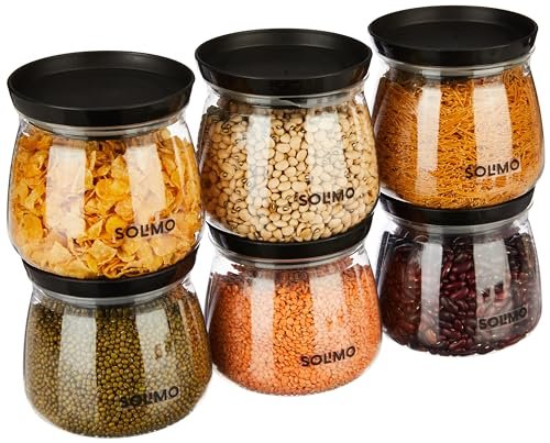 Amazon Brand – Solimo Plastic Storage Jar and Container Set I Air Tight & BPA Free Containers for Kitchen Storage Set I Grocery Kitchen Container Set I Multipurpose Jar,800 Ml Each, Set 6, Black
