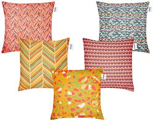 Amazon Brand – Solimo Pozant Polyester Printed Cushion Covers, Set of 5, 16 x 16 Inch