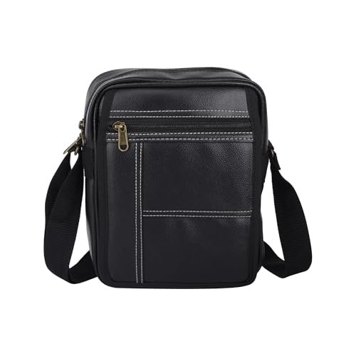 Amazon Brand - Solimo - Vegan Leather Sling Cross Body Travel Office Messenger One Side Shoulder Bag for Men(Black)