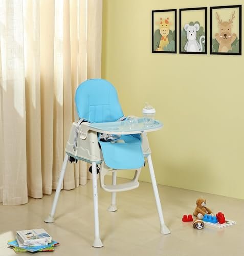Amazon Brand - Supples 4-in-1 High Chair for Babies and Kids | Blue | Supports up to 15 Kg Weight | Detachable & Portable | Safe for Kids from 6 Months to 3 Years