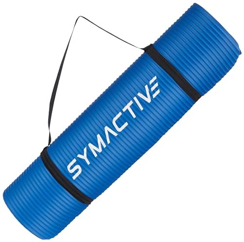 Amazon Brand - Symactive 10mm Extra Thick NBR Yoga Mat with Carrying Strap, Yoga Mat for Women & Men for Workout, Yoga and Fitness (Blue)