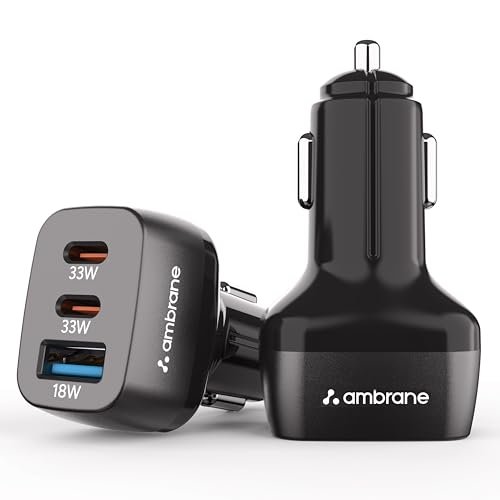 Ambrane 84W Triple Output Fast Car Charger with 2 Type-C & 1 USB, 33W Type C Charging with PD Technology, Fast Charging Adapter Compatible with Cars for iPhone & Android Smartphones (Charge C84,Black)