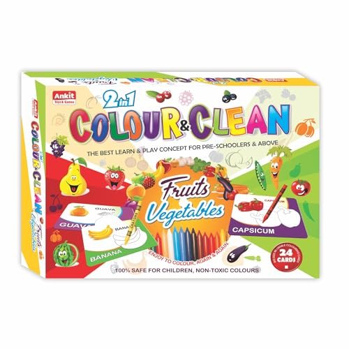 Ankit Toys & Games 2 in 1 Color & Clean Fruits and Vegetables, Reusable, Oil Pastels & Duster | Brain Boosting Game for Toddlers | Set of 24 Flash Cards in a Box for Age 3 Years & Above is available on Amazon at best discounted online price. Original price of this product is ₹ 399. You can buy this product at discounted rate ₹ 159.17.