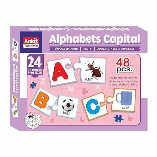 Ankit Toys & Games Alphabet Capital Educational Puzzle for Kids, 24 Letters Set, 48 Pieces Self-Correcting Jigsaw, Early Learning for Preschool & Toddlers, Fun Game for Boys and Girls Ages 3+ is available on Amazon at best discounted online price. Original price of this product is ₹ 399. You can buy this product at discounted rate ₹ 128.95.
