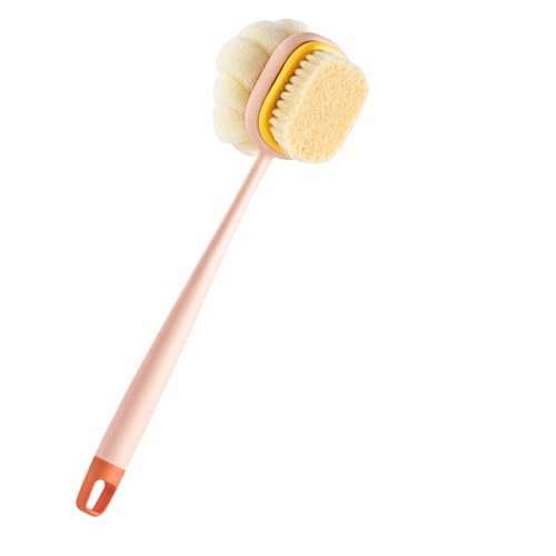 - ✔ LONG HANDLE FOR EASY BACK SCRUBBING Ergonomic long, sturdy handle helps reach difficult areas like the back, shoulders, and feet without bending or strain.