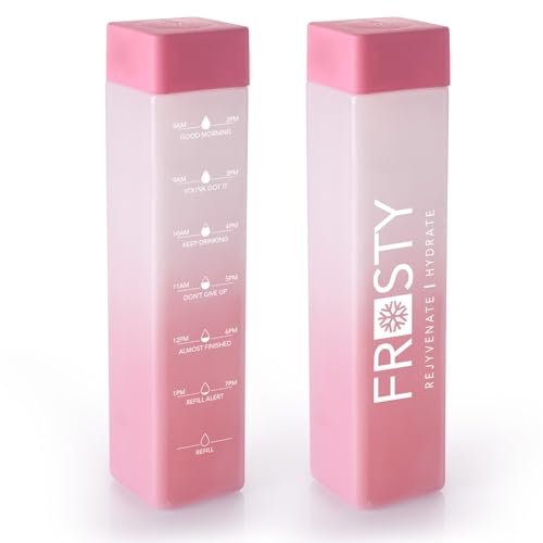 AQUAWARE – Frosty 100% Food Grade Premium Plastic Fridge Square Water Bottle With Motivational Time Marker – Unbreakable,Leakproof&Non-Toxic (2 Pieces, 1Litre, Red)