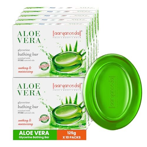 Aryanveda Aloe Vera Glycerine Bathing Soap 125g (Pack of 10) | Natural Hydrating & Moisturizing Body Cleanser for Soft, Glowing Skin | For Women & Men | All Skin Types is available on Amazon at best discounted online price. Original price of this product is ₹ 700. You can buy this product at discounted rate ₹ 369.