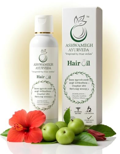 - Bhringraj, Ashwagandha & 9 Ayurvedic herbs help reduce hair fall, strengthen roots, and nourish the scalp for visibly healthier, thicker hair. only with Ashwamegh Ayurvedic Hair oil.