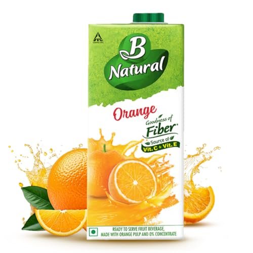 B Natural Orange Juice, Goodness of fiber, Enriched with Vitamin C & E, Made with 100% Indian Fruit and 0% Concentrate, 1 litre is available on Amazon at best discounted online price. Original price of this product is ₹ 120. You can buy this product at discounted rate ₹ 65.33.