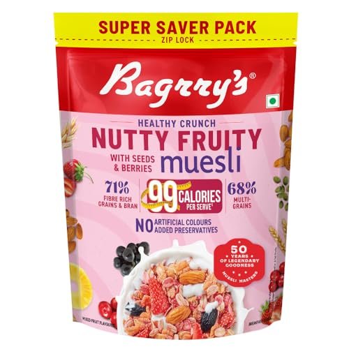 - Backed by over 50 years of expertise in grain processing, Bagrry’s was the first brand to introduce muesli in India. With a strong legacy of quality and innovation, Bagrry’s delivers premium breakfast cereals made from real ingredients using honest recipes. Every bowl of Nutty Fruity Muesli offers a blend of taste, texture, and nutrition.
