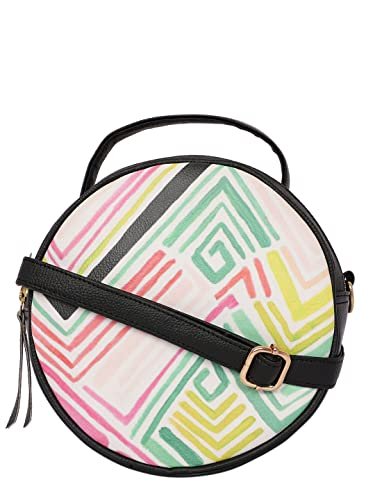Bagsy Malone Round Sling Crossbody Bag For Women| Beautiful Print Vegan Leather Purse With Slip Pocket Inside| Zip Closure & Adjustable Strap| Storage Space For Essentials