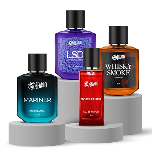 BEARDO Mariner, LSD, Whiskey Smoke & GodFather Perfume For Men (50Ml X 4) | Long Lasting Perfume for Men | Date Night Perfume For Men | Gift for Men | Gift For Friends | Gift for Husband | Gift for boyfriend is available on Amazon at best discounted online price. Original price of this product is ₹ 3196. You can buy this product at discounted rate ₹ 929.07.