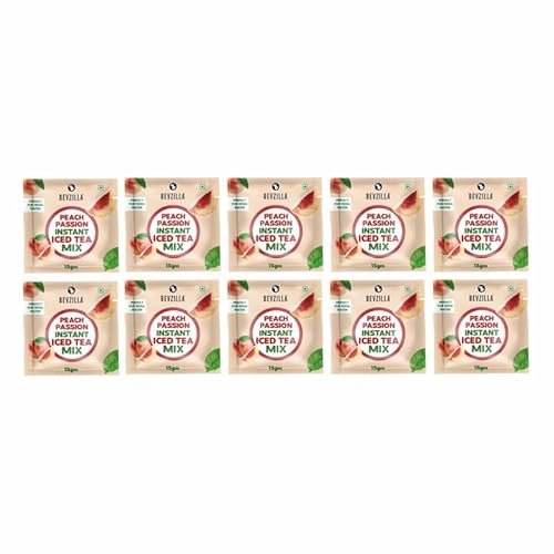 - Pack Contains 10 Sachets (15gm Each) – This pack includes five individual 15gm sachets of Bevzilla Peach Passion Instant Iced Tea, perfect for easy single servings