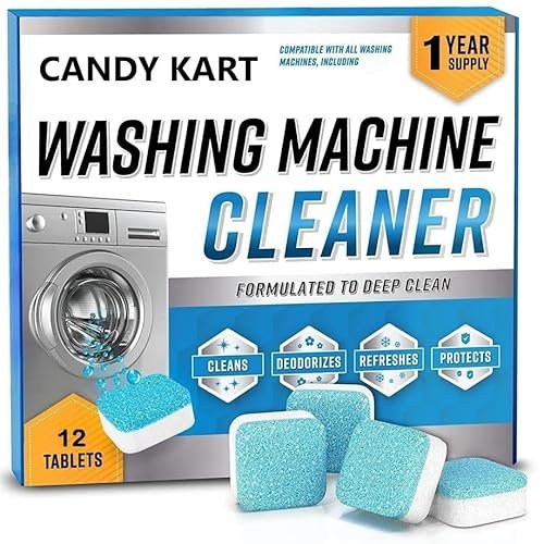 CANDY KART Washing Machine Cleaner Descaler 12 Pack – Deep Cleaning Tablets for HE Front Loader & Top Load Washer – Removes Odors & Residue – Cleans Inside Drum and Laundry Tub Seal