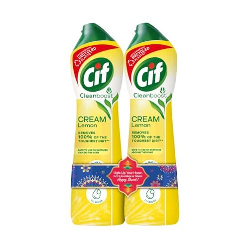 Cif Lemon Abrasive Surface Cleaner Cream for Kitchen & Bathroom, Removes Grease, Dirt & Tough Stains with Natural Cleaning Particles, 2x500ml is available on Amazon at best discounted online price. Original price of this product is ₹ 550. You can buy this product at discounted rate ₹ 275.