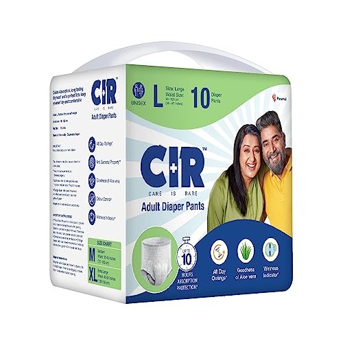 CIR Adult Diaper Pants Style | Adult Diaper Large Size (L)|Waist (90-120cm I 35″ – 47″) |10 hr Absorption-Protection | Unisex with Wetness Indicator | Odour Control | Goodness of Aloe Vera | 10 Units is available on Amazon at best discounted online price. Original price of this product is ₹ 549. You can buy this product at discounted rate ₹ 231.