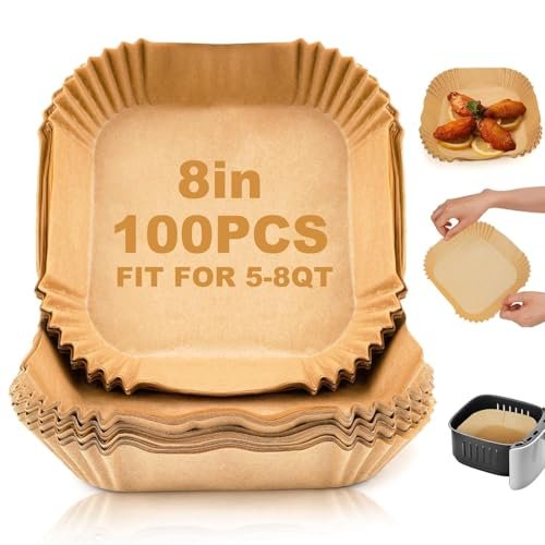 Clazkit 100 PCS Air Fryer Paper Sheets Disposable Liner for Microwave Oil-Proof Parchment for Frying Baking Cooking Roasting and Microwave (Square 8 Inch) is available on Amazon at best discounted online price. Original price of this product is ₹ 399. You can buy this product at discounted rate ₹ 186.01.