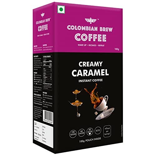 Colombian Brew Creamy Caramel Instant Coffee Powder, No Sugar Vegan, 100g Box is available on Amazon at best discounted online price. Original price of this product is ₹ 399. You can buy this product at discounted rate ₹ 101.