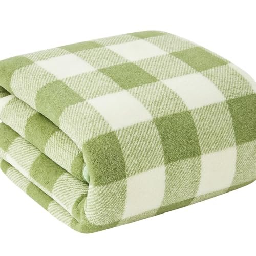 Cortina Checks Printed Microfiber Towels for Bath Large Size-Super Soft Coral Fleece Bathing Towel with Hook Quick Dry Super Absorbent-Bath Towel for Men and Women-70x140 cm [Green]