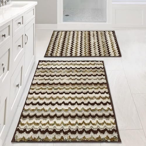 - Cortina Microfiber Striped design Anti-Skid Bath Mats | Soft & Super Absorbent Mats for Shower | Washable, Non-Slip & Quick-Drying Mats, 40×60 CM | Pack of 2