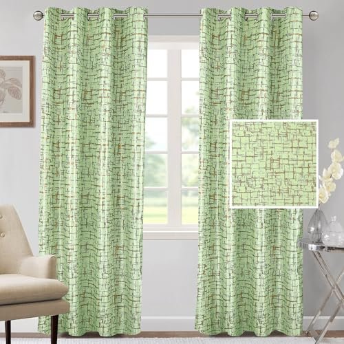 Cortina Polyester Door Curtains 7 feet 150GSM - Foil Printed Light-Filtering (60-70% Room Darkening) Curtains for Bedroom, Office, Living Room & Hallway (Pack of 2, Light Green)