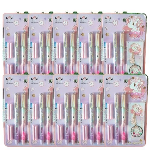 Crackles Cute Unicorn Glittery Fountain Pen Set With Book Mark For Girls Stationery Writing Set For Kids (2 Pens, 4 Refills and 1 Bookmark)- Multi Color (Pack of 10)