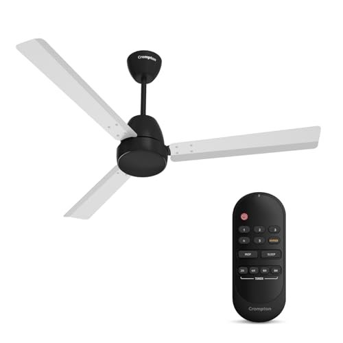 Crompton Energion Nucleoid 1200mm BLDC Ceiling Fan | Remote Control | BEE 5 Star Energy Rated | High Air Delivery | 4 Years Manufacturer Warranty | White Black