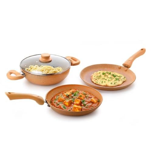 Crystal Marbo Plus Induction Bottom 4 Pc Nonstick cookware set | Tawa 280 mm + Fry Pan 250 mm + Kadai 250 with Glass Lid | Thickness: 3mm | 5 Layer Coating | Metal Spoon Friendly | Colour – Sandalwood is available on Amazon at best discounted online price. Original price of this product is ₹ 4750. You can buy this product at discounted rate ₹ 1161.92.