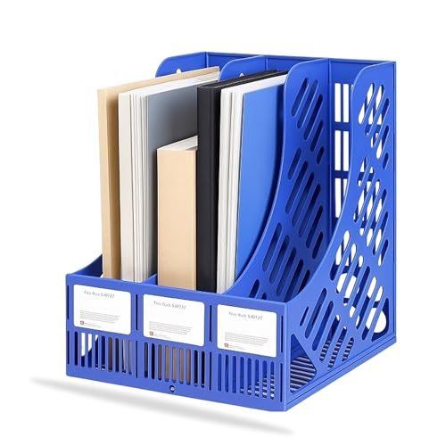 DaKos Compact File Rack – 3-Section Organizer for Files, Paper, and Magazines in Office Cabinet (Blue)