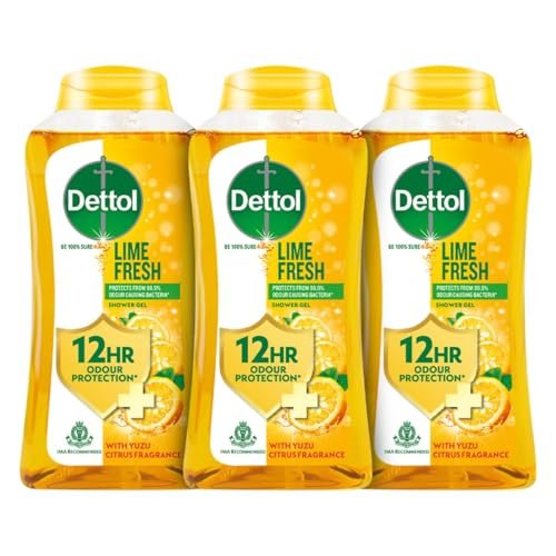 Dettol Lime Fresh Body Wash and Shower Gel Bottle for Women and Men (Pack of 3 – 250ml each) | Soap-Free Bodywash | 12hr Complete Odour Protection