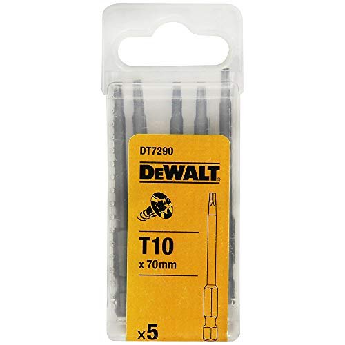 DEWALT DT7290-QZ 70mm T10 Torx Head Screwdriving Bits (Pack of 5), Heat Treated Steel, Full Fit Head, Preceision Machined Tip Geometry, 10×4.1×1 cm
