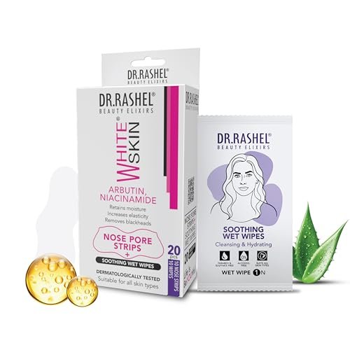 DR.RASHEL White Skin Nose Pore Strips | With Arbutin & Niacinamide | Instant Blackhead Removal | Deep Cleansing | 10 Strips + 10 Wipes | 20 PCS is available on Amazon at best discounted online price. Original price of this product is ₹ 350. You can buy this product at discounted rate ₹ 148.