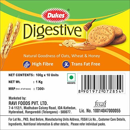 Dukes Digestive – Natural Goodness of Oats, Wheat, and Honey (Pack of 10 – 1000 Gram) – Honey is available on Amazon at best discounted online price. Original price of this product is ₹ 270. You can buy this product at discounted rate ₹ 128.