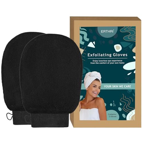 Erthri Body Exfoliating Glove | Pure Viscose Fibre Body Exfoliator Glove | Double-layered Exfoliating Gloves For Dead Skin | Bathing gloves Tan Removal For Face And Body (Black) (Pack of 2)