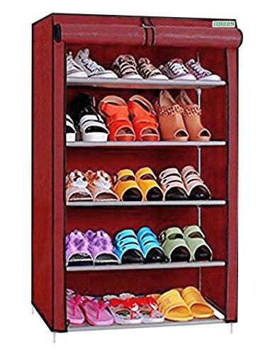 FLIPZON Multipurpose 5 Shelves Shoe Rack with Zip Door Cover & Side Pockets, Multiuse Wide Shelve Storage Rack for footwear, Toys, clothes with Dustproof Cover (5 Shelves) (Maroon) is available on Amazon at best discounted online price. Original price of this product is ₹ 2700. You can buy this product at discounted rate ₹ 583.