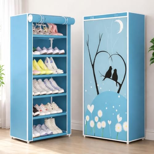 FLIPZON Premium 6-Tier Shoe Rack with Cover | Foldable Shoe Organizer Cabinet with Love Bird Design | Dustproof Fabric Shoe Stand for Home, Bedroom & Entryway | Space Saving Storage (Blue) is available on Amazon at best discounted online price. Original price of this product is ₹ 2999. You can buy this product at discounted rate ₹ 399.