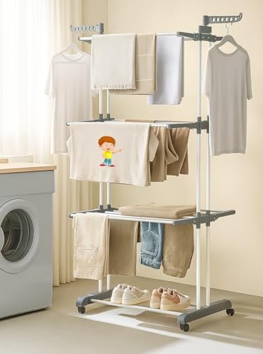 FLIPZON Premium Clothes Stand for Drying with Wheels | Portable | 3 Layer Rack for Balcony | Double Pole | Foldable Wings | 24 Hanger Rods | Foldable Wings | Alloy Steel & Plastic (White & Grey) is available on Amazon at best discounted online price. Original price of this product is ₹ 5000. You can buy this product at discounted rate ₹ 1096.