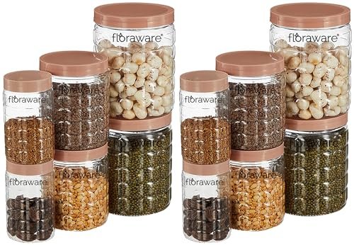 Floraware Jar Container, Set of 12 (4 pcs x 280 ml Each, 4 pcs x 500 ml Each, 4 pcs x 1000 ml), Kitchen Organiser, BPA Free, Stackable is available on Amazon at best discounted online price. Original price of this product is ₹ 1784. You can buy this product at discounted rate ₹ 248.71.