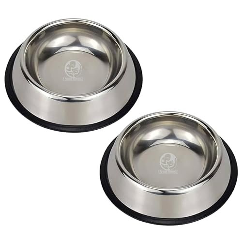 Foodie Puppies Stainless Steel Dog Bowl – (450ml, Pack of 2) Pet Feeder Water Food Bowl Non-Slip Puppy Dishes for Small Dogs, Cats, Kitten and Rabbit | Bowl with Anti-Skid Rubber Base