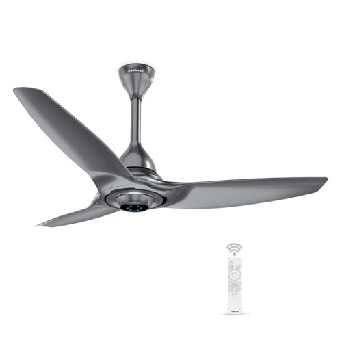 - ENERGY EFFICIENT WITH BLDC TECHNOLOGY: Hush Flo BLDC comes with an energy efficient BLDC motor. It provides a superior air delivery of 230 CMM with 300 RPM at top speed. It consumes only 36W, making it 60% more efficient than conventional fans. REMOTE CONTROL FOR CONVENIENT operations: Hush Flo BLDC comes with a smart IR remote. No need for pairing, adjust the fan’s speed, timer, sleep mode or boost mode at the click of the button.