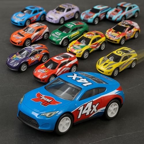 • 10 MINI RACING CARS VALUE PACK – Comes with 10 colorful mini racing cars in different designs, good for group play, sibling fun, and collecting.