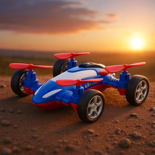 - 🚗 (Striking Design) : A unique fusion of a car and a drone, making it stand out! Unique flying aircraft and car combination toy featuring sleek aerodynamic body with four wheels for imaginative play.